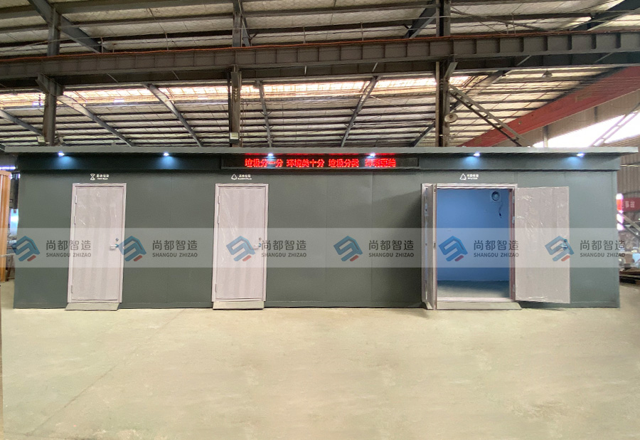在功能设计上,它处处体现着 “智慧” 与 “便民” 的巧思。房体侧面的多扇门,既方便设备维护与清洁,也为后续拓展功能预留了空间;顶部的照明灯带,