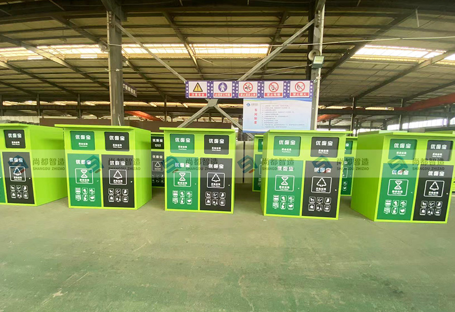 优废宝两投口垃圾箱采用简洁、大方的设计风格,箱体颜色为绿色清新的色调,给人一种环保、整洁的视觉感受。箱体上设有清晰的标识和操作指南,方便用户快速了解设备的使用方法。
