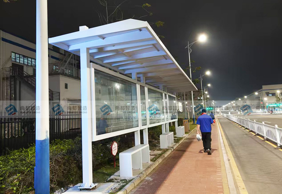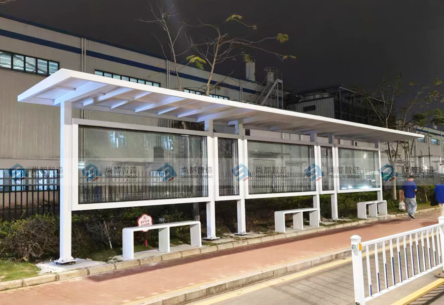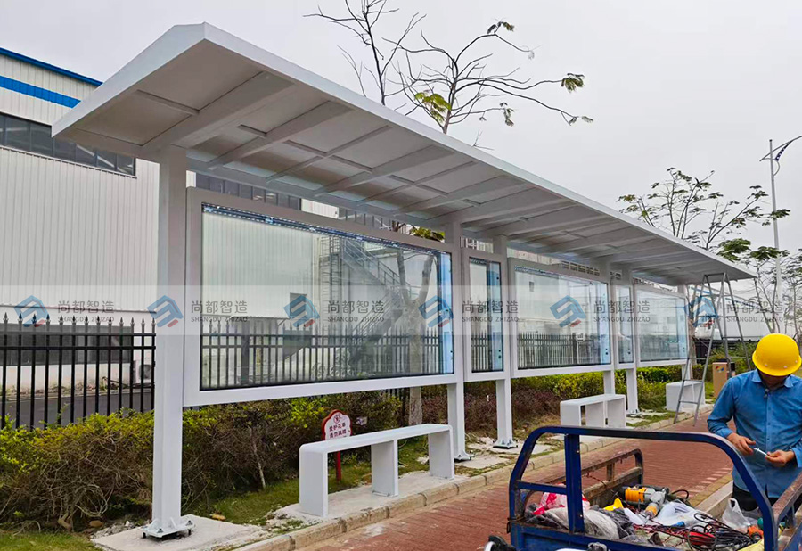 从设计到落地,尚都智造以纯白为主调,用坚固钢结构与通透橱窗,打造兼具颜值与实用的城市驿站。遮阳避雨、信息展示、休憩等候,在东莞的街巷里,让每一次出行都更有温度,让城市界面更显整洁大气。